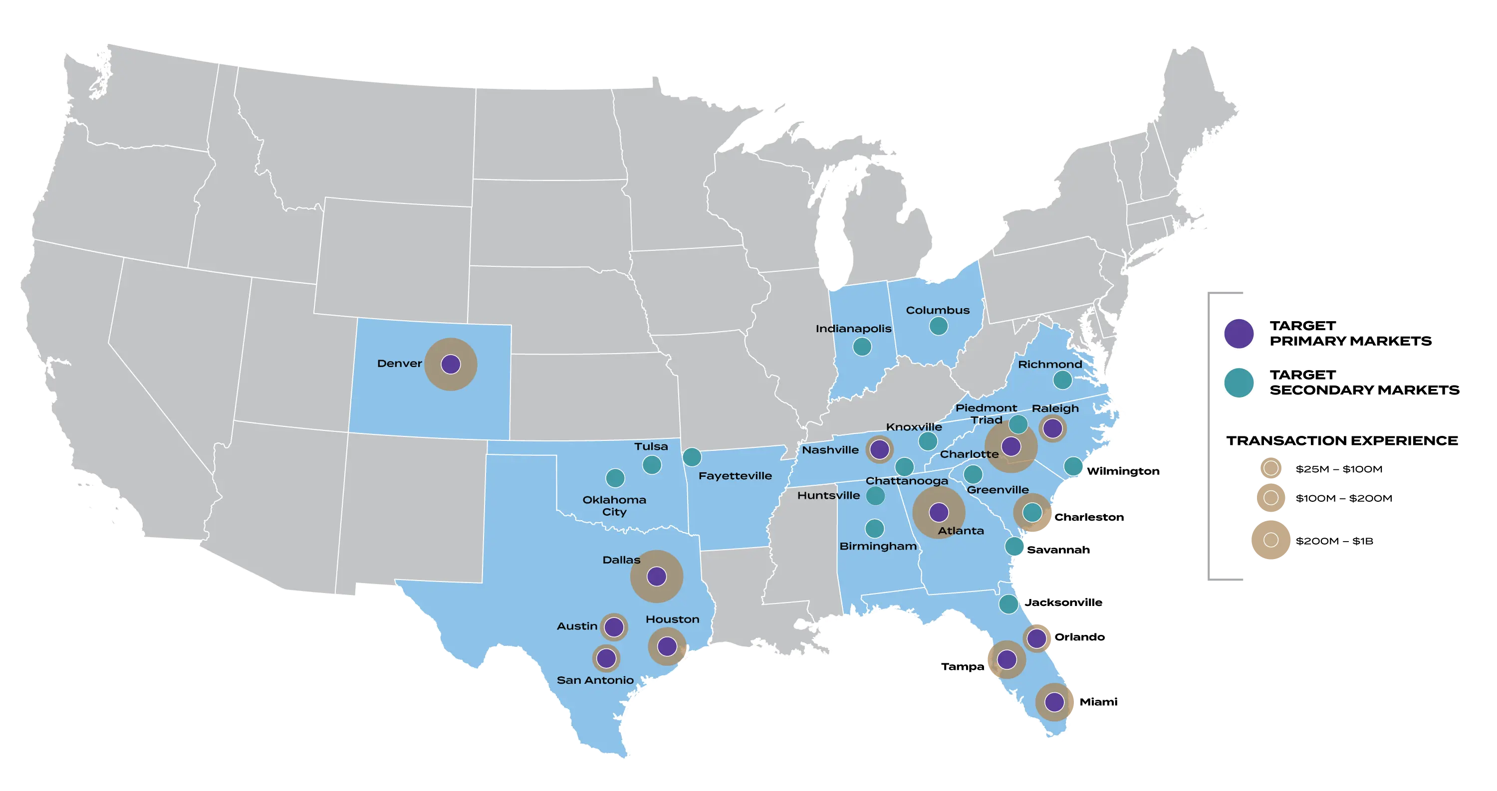 Principals have extensive direct investment experience across markets with particular concentration in the Sunbelt.